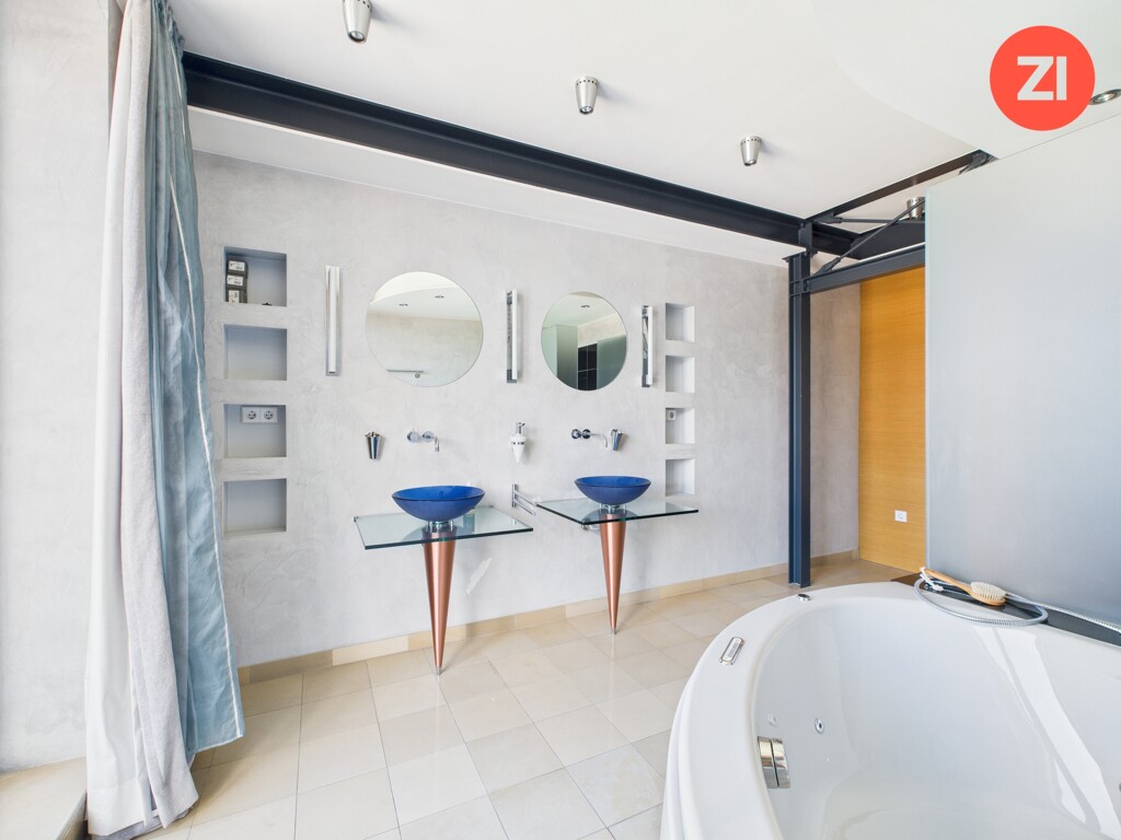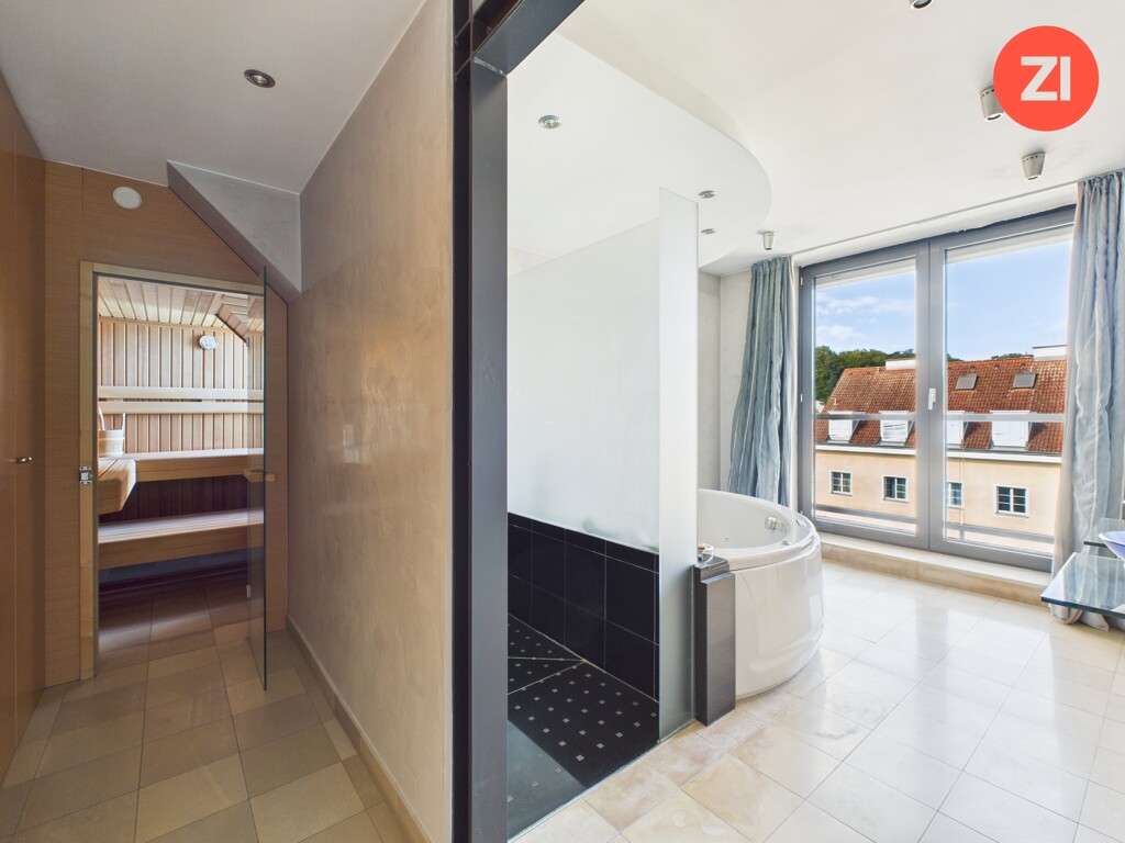 Ein Highlight der Wohnung ist das exklusive Badezimmer im oberen Bereich, ausgestattet mit Walk-In Dusche, großzügiger Badewanne, zwei Waschbecken, einer Sauna und Balkon – ideal für entspannende Momente nach einem langen Tag. Von der Badewanne und der Sauna aus, genießen Sie einen unvergleichlichen Blick auf den malerischen Pöstlingberg.
