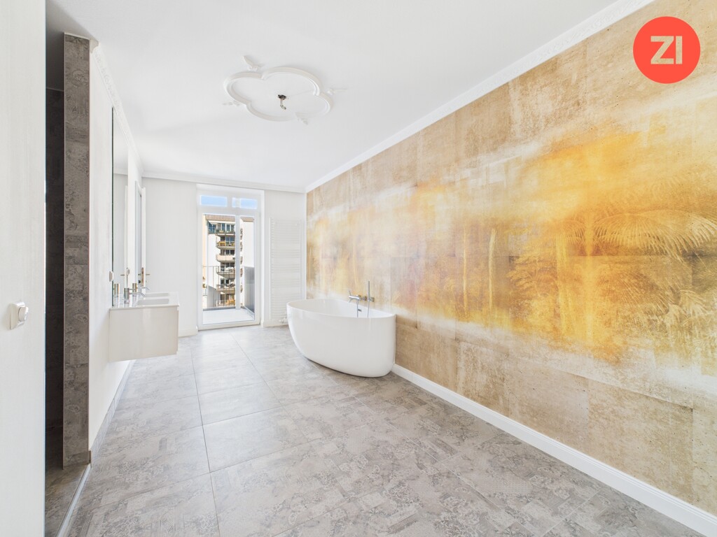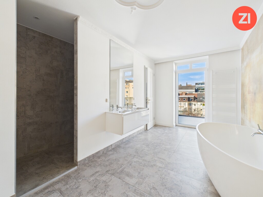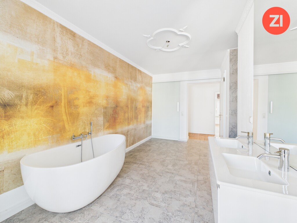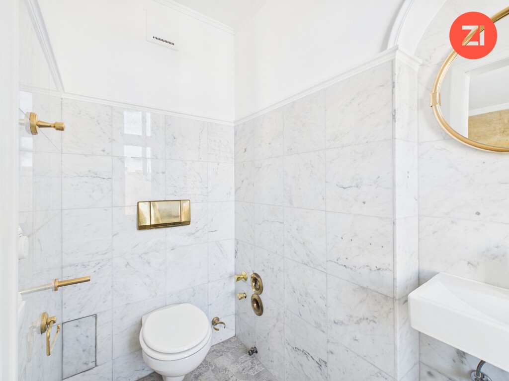 Das stilvolle Badezimmer ist ein wahres Schmuckstück: mit künstlerischem Touch, viel Liebe zum Detail und einem zusätzlichen WC ausgestattet. Zudem steht Ihnen ein weiterer kleiner Balkon mit ca. 4 m² Fläche zur Verfügung.